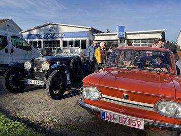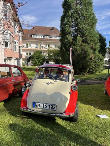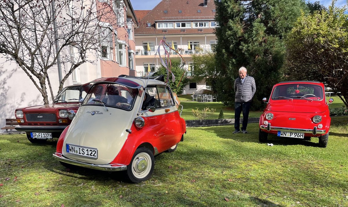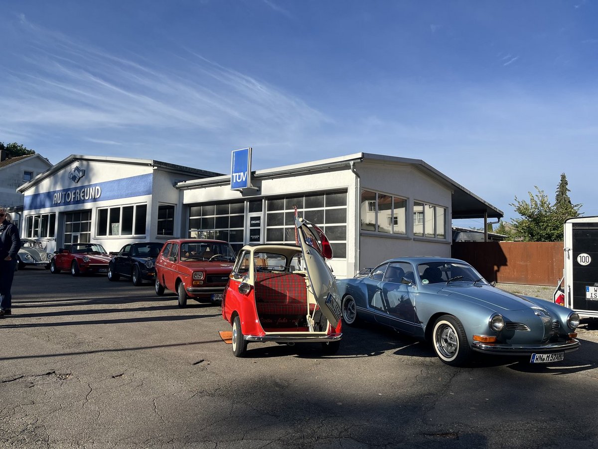 Am Feiertag, dem 3.10.25 – Tag der Deutschen Einheit – fuhren wir mit 14 unserer Oldtimer nach Welzheim ins Seniorenzentrum Bethel, um die Bewohner zu besuchen, ein bisschen Abwechslung zu bringen und schöne Erinnerungen zu wecken.