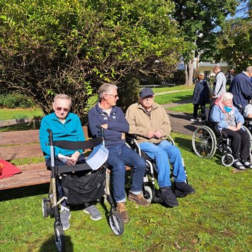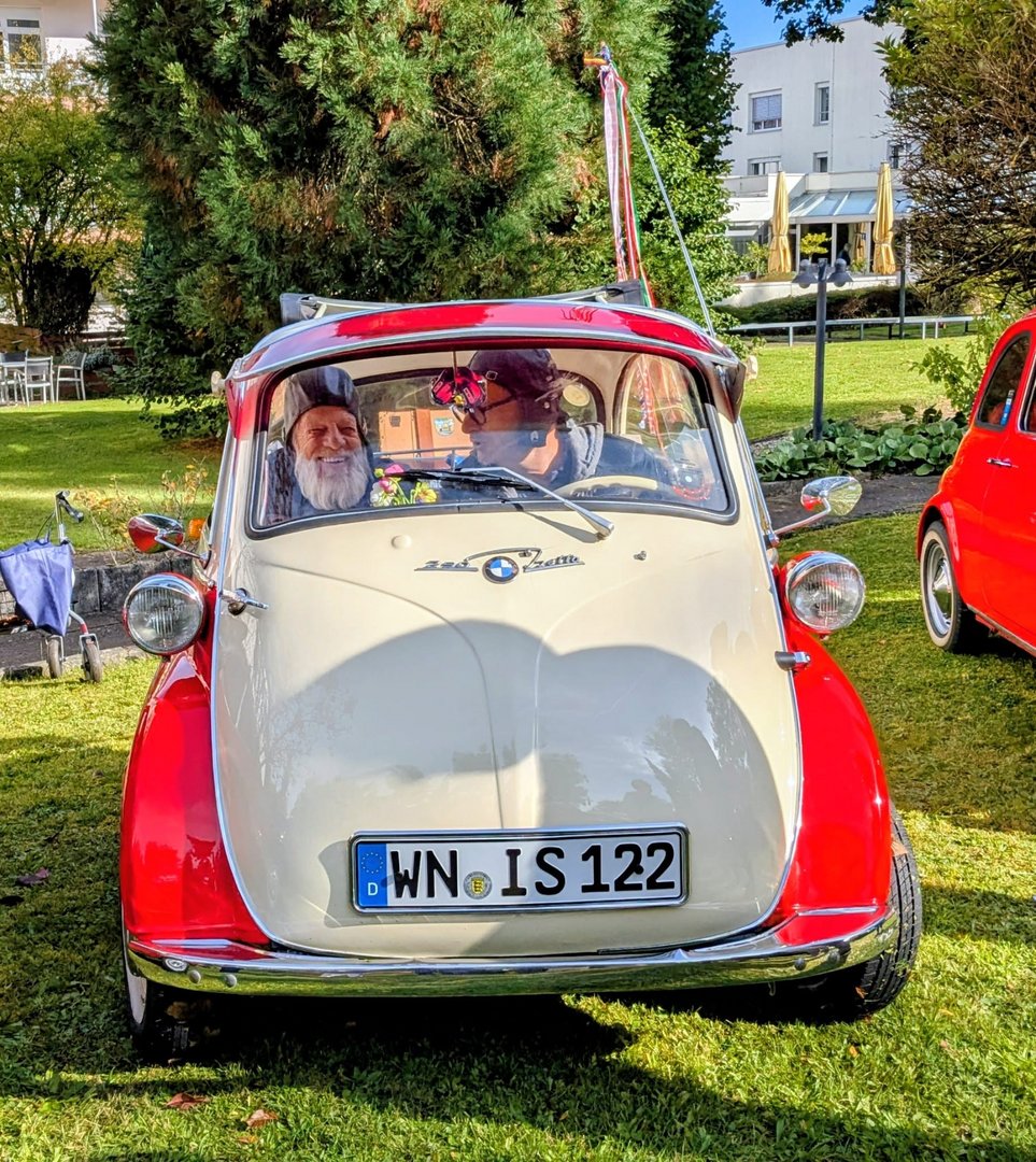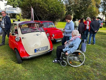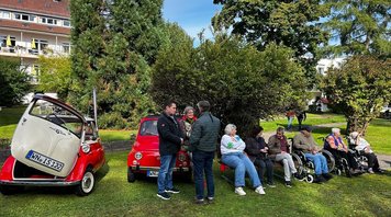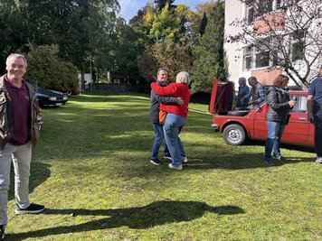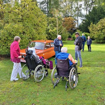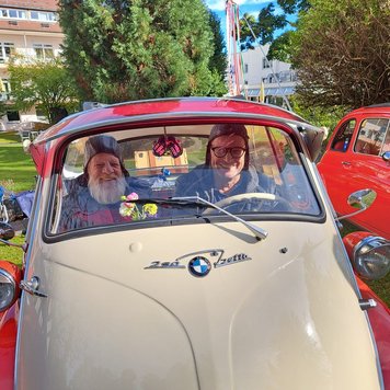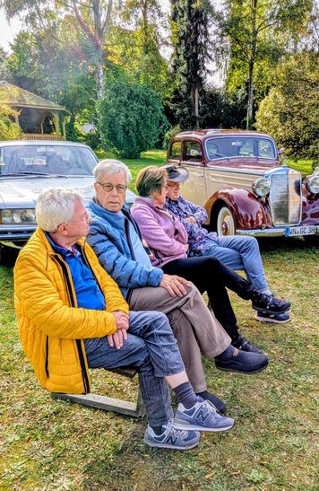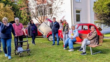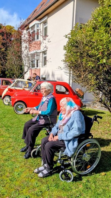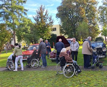 Die Spätsommersonne schien gnädig vom Himmel, als unsere Oldies zu der Rundfahrt starteten, ein oder mehrere erwartungsfreudige Heimbewohner als Beifahrer mit drin. Später gab es noch eine zweite kleine Rundfahrt.