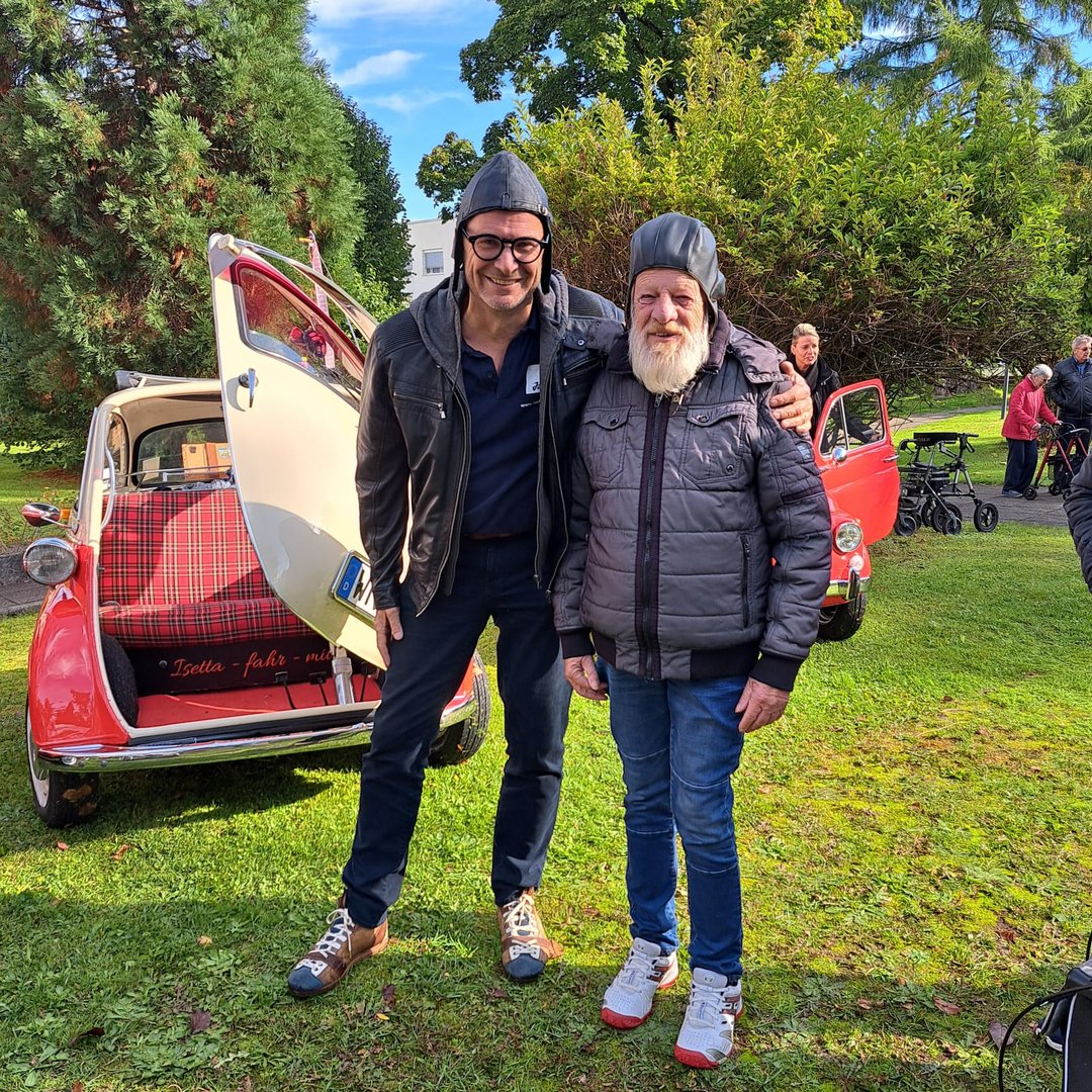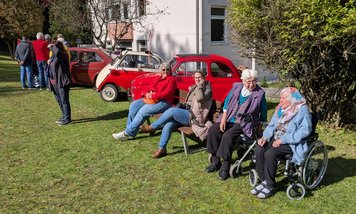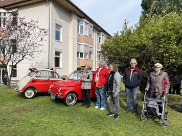 Erik, Sylvia und liebe Helferlein hatten im Vorfeld alles organisiert: Die Heimleitung, die Bediensteten, die Presse, die Gemeinde und natürlich die Bewohner wussten Bescheid, dass an diesem Tag einige Vehikel aus alten Zeiten in den Park einfahren und angeschaut werden können. Und nicht nur das!